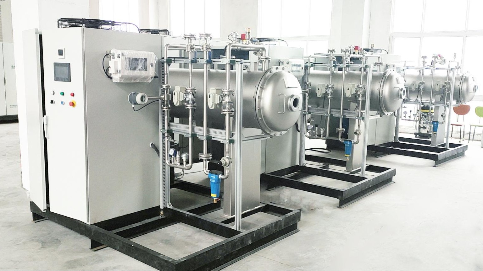L'armoire d'alimentation de l'ozone et la salle du générateur sont placées sur la même base. Toutes les canalisations et tous les instruments sont raccordés en usine. Ce système compact permet de réduire considérablement l'encombrement et le temps de construction sur site. La chambre du générateur horizontale est facile à entretenir et à observer, et la conception refroidie par air de l'alimentation à fréquence variable est sûre et fiable. Équipé d'un automate programmable Siemens de série, il peut être équipé de diverses vannes de contrôle automatique, notamment de température, de pression, de débit et de concentration, ainsi que de vannes de régulation, afin de minimiser la consommation d'énergie tout en répondant aux besoins des clients.